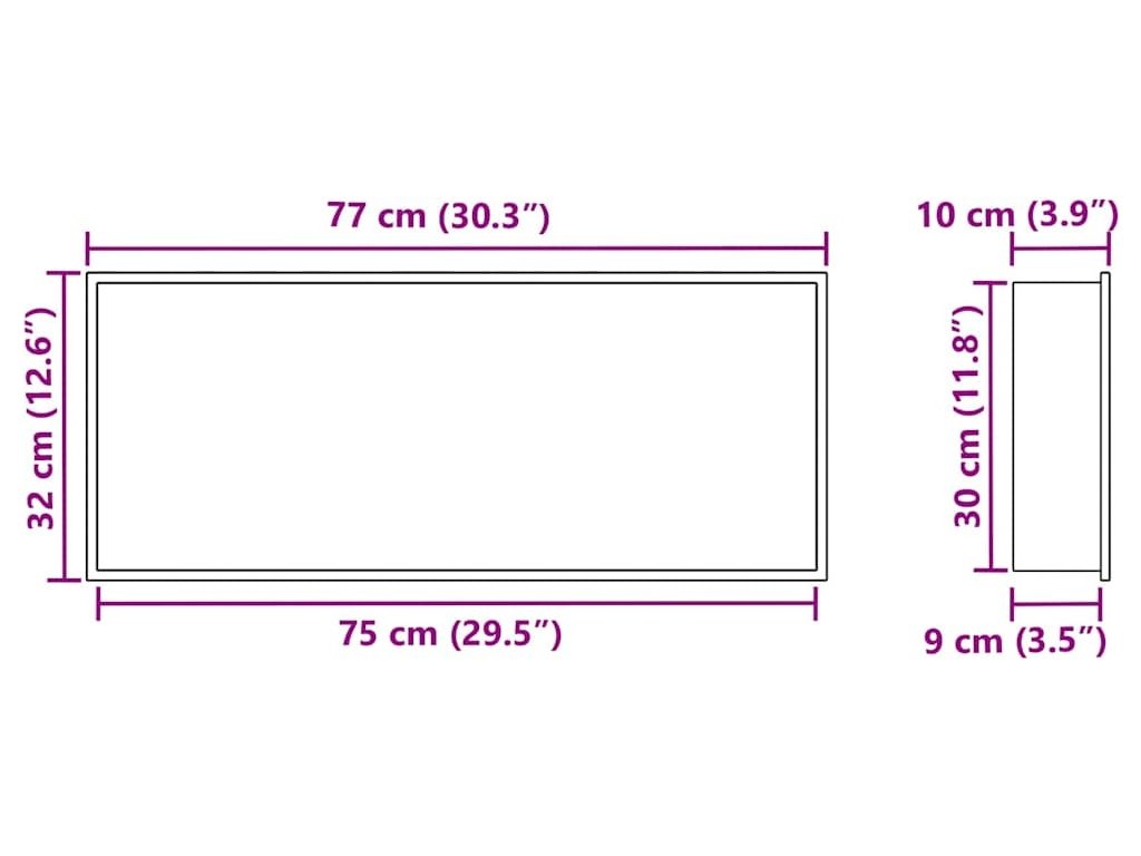 - Celkové rozměry: 75 x 30 x 9,5 cm (D x Š x V)