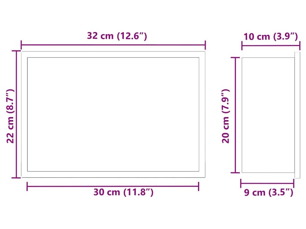 - Celkové rozměry: 30 x 20 x 9,5 cm (D x Š x V)