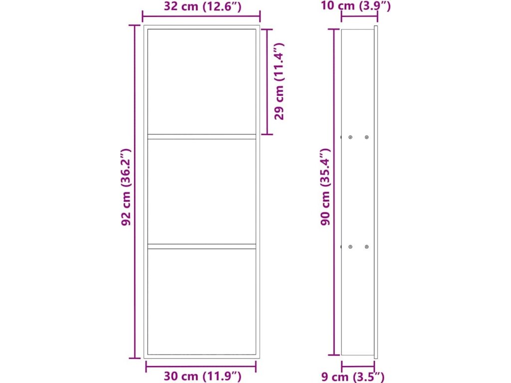 - Celkové rozměry: 90 x 30 x 9,5 cm (D x Š x V)
