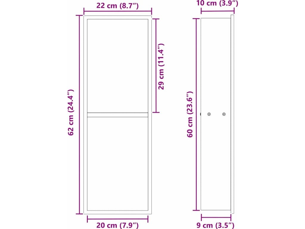 - Celkové rozměry: 60 x 20 x 9,5 cm (D x Š x V)