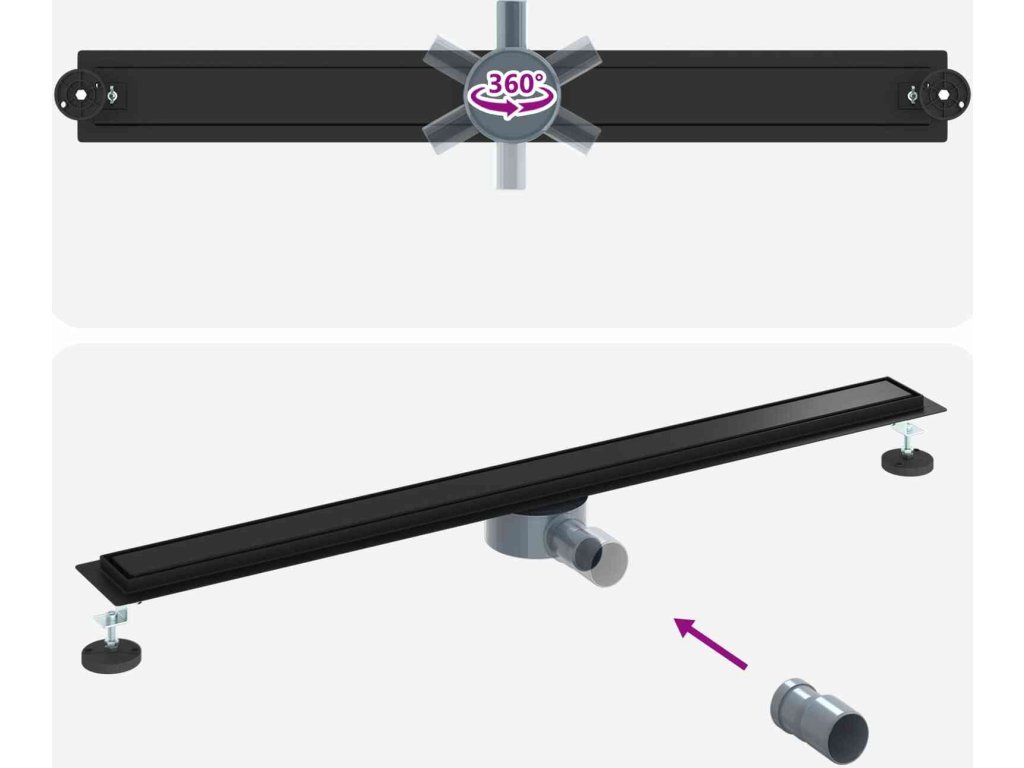 Sprchový odtok 2 v 1 s 360° sifonem Černá 100 cm [42015972]