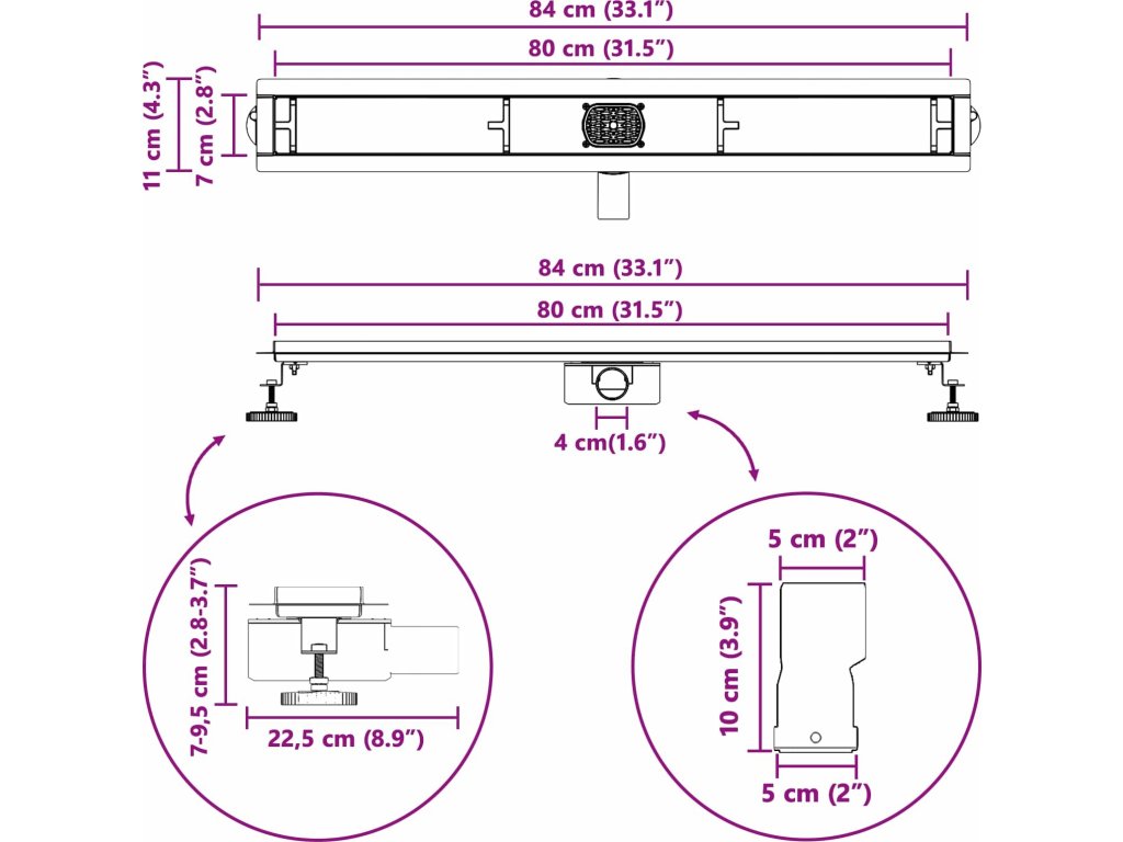 Tento moderní sprchový odtok je must-have pro každého, kdo chce přidat trochu stylu a funkčnosti do své koupelny. Je robustní díky nerezové oceli a jeho minimalistický design skvěle zapadá do různých koupelen, zvyšuje celkový dojem a skvěle odvádí vodu. Tento sprchový odtok se postará o to, že vaše koupelna bude nejen hezká, ale taky skvěle fungující.