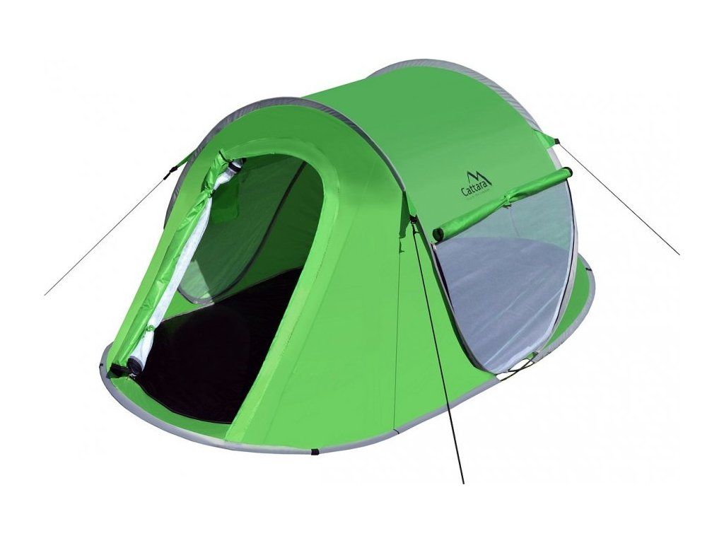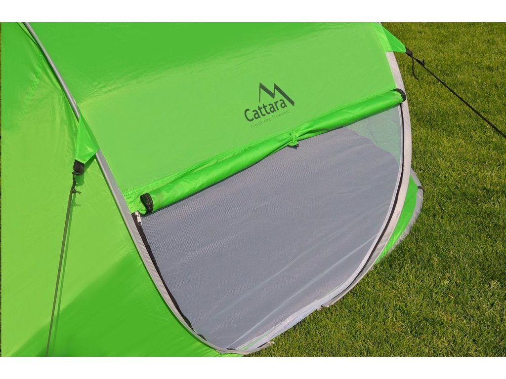 Díky šikovné samorozkládací konstrukci stan pouze vybalíte a pak už jen ukotvíte, aby vám ve větru neulétl. Pro jistotu nechybí ani napínací nastavitelná lanka. V jednoplášťovém stanu Cattara BOVEC s celkovými rozměry 245 x 145 x 95 cm se pohodlně vyspí 2 osoby. Hlavní vstup je opatřen oboustranným zipem pro snadné otevírání zvenku i zevnitř. Po otevření hlavního vstupu narazíte na síťovanou prodyšnou plentu (moskytiéru), která zamezí vstupu nezvaným hostům, jako jsou komáři, mouchy a jiný hmyz.