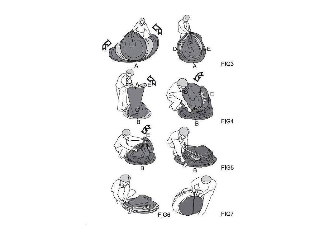Nosné tyče jsou vyrobeny z odolných skelných vláken s výbornou ohebností a dlouhou životností. Práce se skládáním a nasouváním tyčí díky samorozkládací konstrukci odpadá. Příslušenství samozřejmě zahrnuje také kolíky pro ukotvení základny a napínacích nastavitelných provázků. Stan má ve složeném stavu kruhový tvar o rozměrech 75 x 9 cm, takže jej snadno přenesete, uložíte do kufru auta nebo uskladníte.