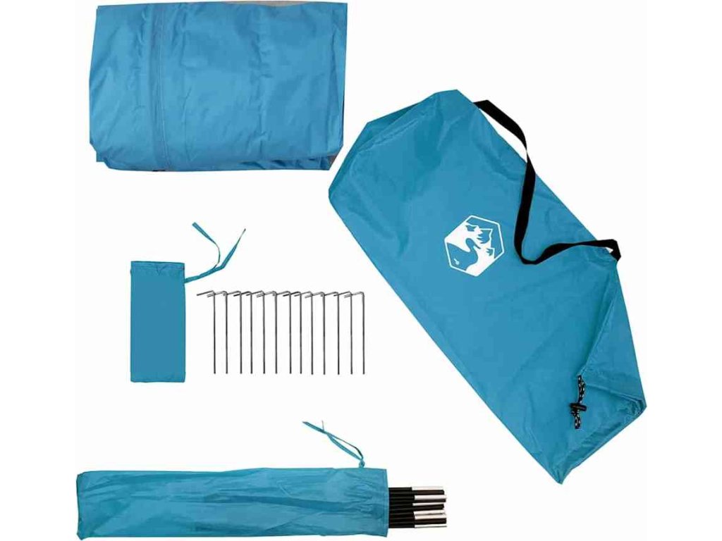- Stabilní a bezpečné: Kovové kolíky a lanka zajišťují bezpečné ukotvení kempinkového větrolamu a zajišťují stabilitu i ve větrných dnech na pláži nebo v kempu.