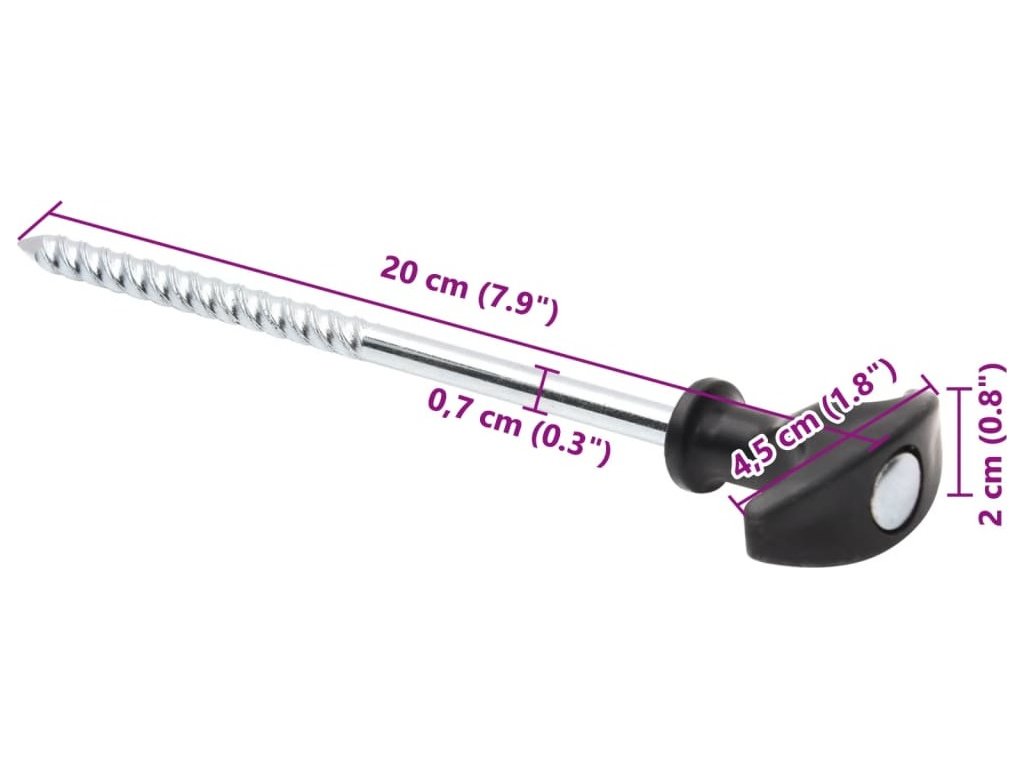 - Široké použití: Jedná se o multifunkční kolík, který je nezbytný pro ukotvení různého venkovního vybavení, jako jsou stany, altány, markýzy, zástěny, stanové přístřešky a rybářské vybavení.