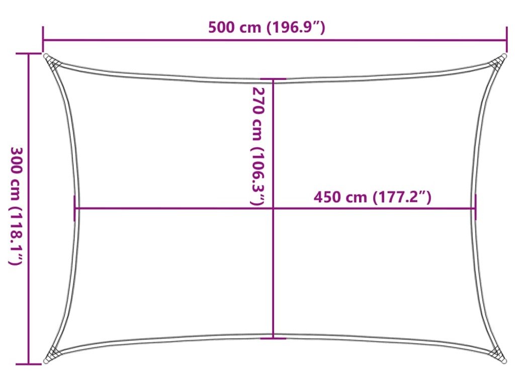 Sluneční plachta vyrobená ze 100% HDPE (vysokohustotní polyethylen) vás chrání před přímým slunečním zářením, umožňuje dostatečný průchod vzduchu a je propustná pro vodu. HDPE je speciálně upraven, takže je odolný proti plísním a UV záření. Slunečník se snadno sestavuje pomocí nerezových upevňovacích prvků na každém rohu a přiložených lanek.