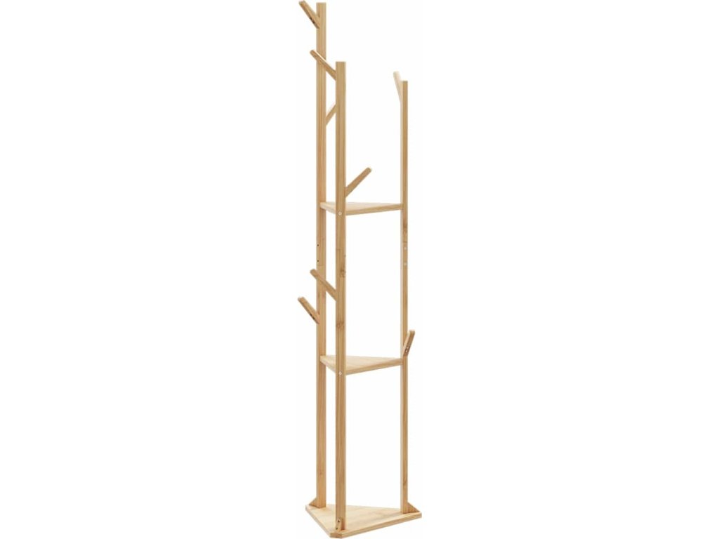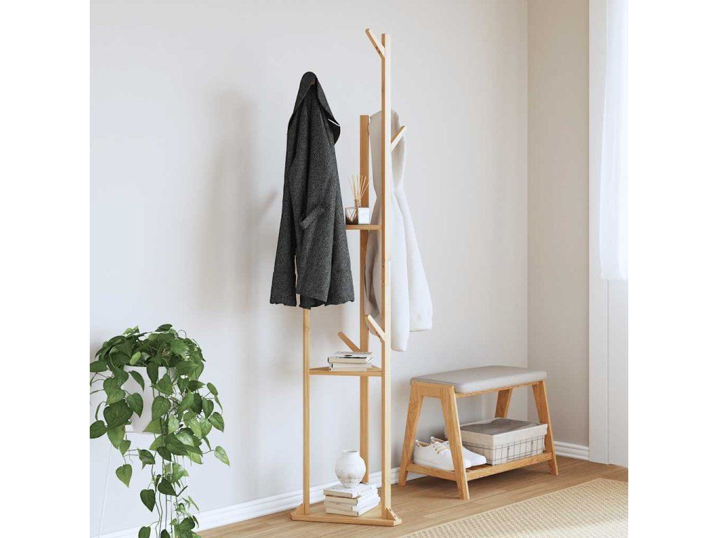 Stojan na kabáty s háčky a policemi 39x33x166 cm bambus [4008917]