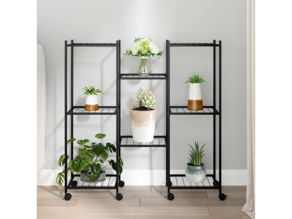 Stojan na květiny s kolečky 83 x 25 x 83,5 cm černý železo [343128]