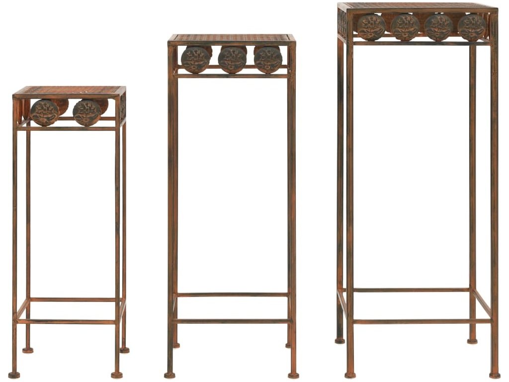 Stojan na květiny sada 3 kusů ve vintage stylu kovové rezavé [245928]