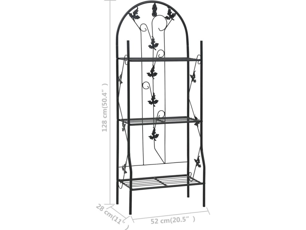 Tento stojan na květiny je vyrobený ze železných trubek a je potažený klimaticky odolnou černou epoxidovou pryskyřicí. Má 3 prostorné police, na které můžete umístit a vystavit vaše hrnkové rostliny. Sestavení tohoto stojanu na květináče je snadné.