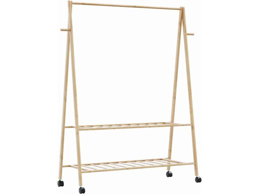 Stojan na oblečení s policemi a kolečky 132x45,5x155,5cm bambus [4008911]