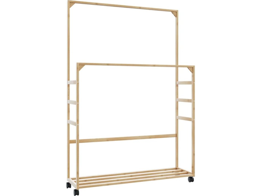 Stojan na oblečení s policemi a kolečky 90x35x155 cm bambus [4008916]