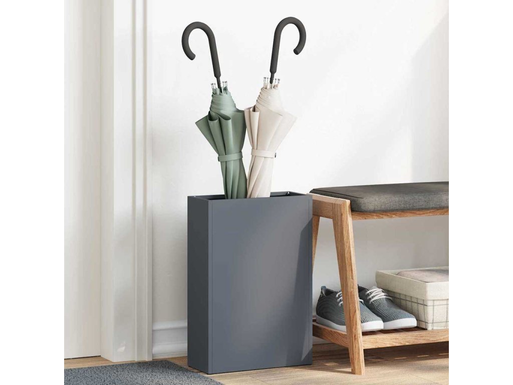 Tento moderní stojan na deštníky s úložným prostorem spojuje styl s funkčností, takže vaše předsíň zůstane uspořádaná a bez nepořádku. Díky elegantnímu obdélníkovému tvaru skvěle ladí s moderními trendy a přidává špetku jednoduchosti a elegance. Robustní ocelový rám zajišťuje potřebnou oporu a trvanlivost, což z něj dělá funkcionalitu do každého vchodu.