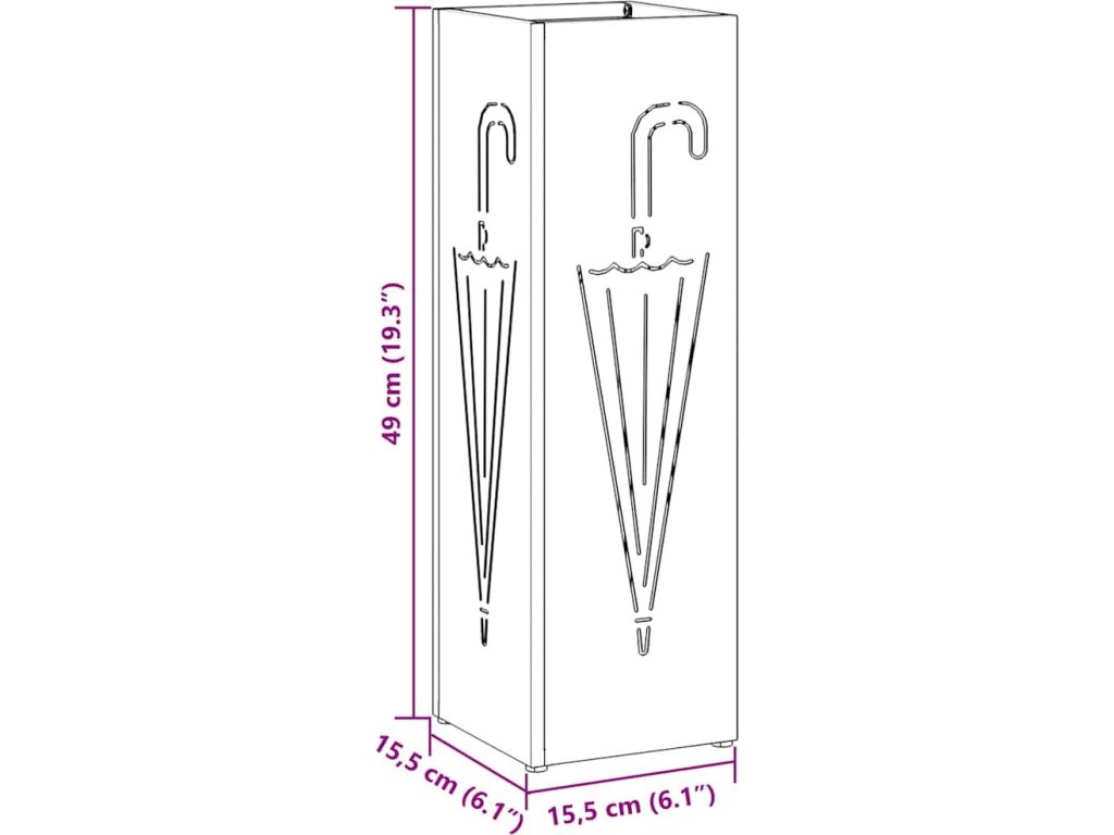 - Doporučené umístění: Ideální do obývacích pokojů nebo předsíní, tento stojan slouží jako funkční a útulný prvek. Jeho moderní design a pevnost ladí s mnoha různými styly a poskytují stylové řešení pro úschovu deštníků, které vyhovuje každému vkusu.
