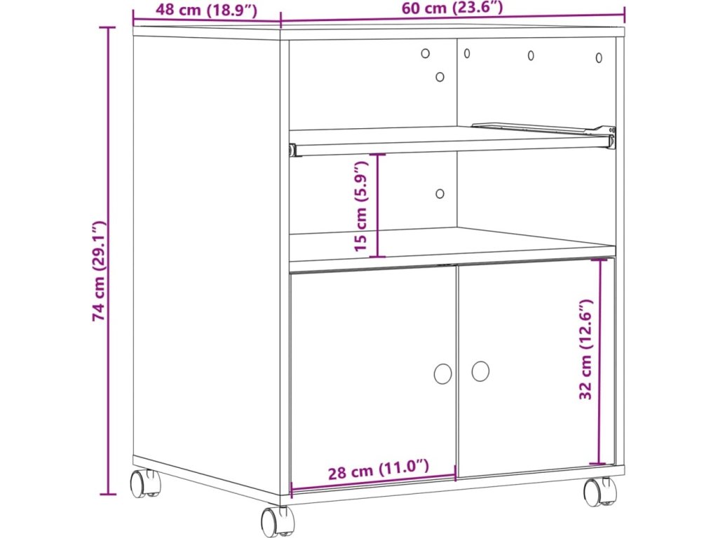 Stojan na tiskárnu na kolečkách 60 x 48 x 74 cm [840637]