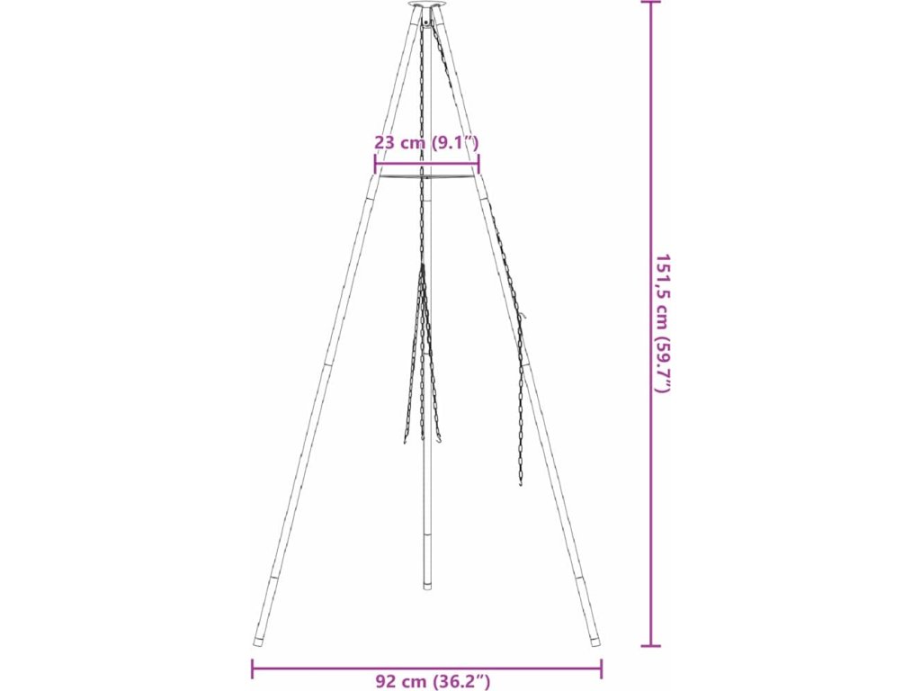 Tento stativ na táborák nabízí skvělé řešení pro venkovní vaření. Je ideální pro zahradní párty nebo kempování. Jeho elegantní a minimalistický styl ladí s každým prostředím, a to ho činí atraktivní volbou pro všechny milovníky vaření a dobrodružství. Díky trojúhelníkovému tvaru je stabilní a snadno se používá při vaření nad otevřeným ohněm.