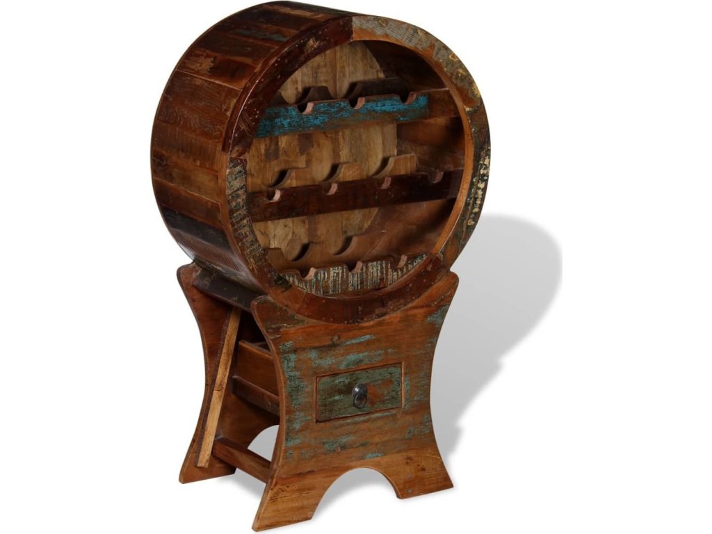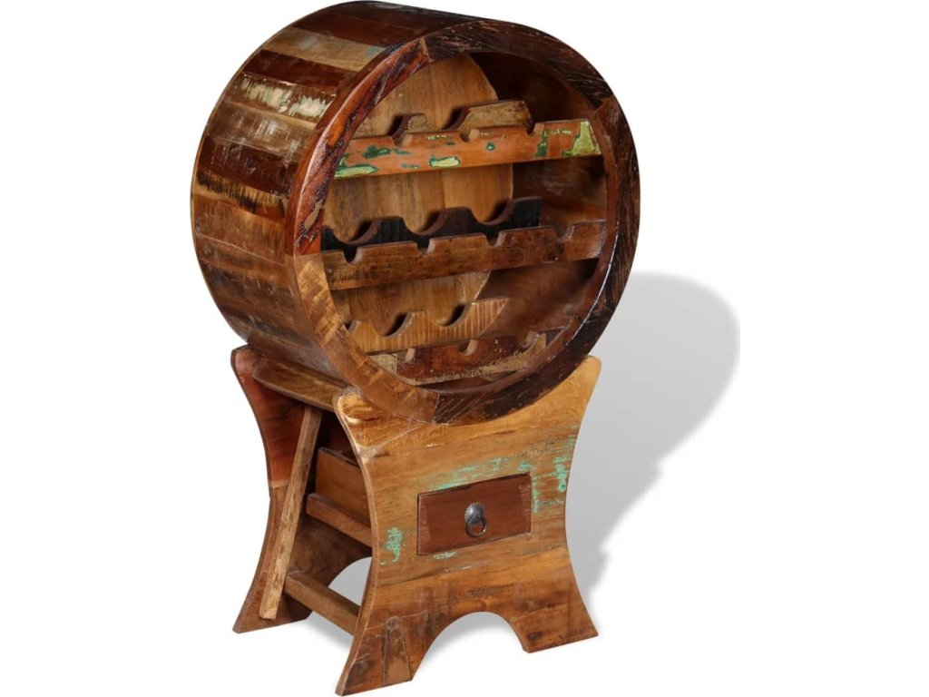 Tento vintage dřevěný stojan na víno z masivního recyklovaného dřeva je jako dělaný pro milovníky vína. Je elegantní a dodá špetku starosvětského šarmu vaší kuchyni, jídelně či obývacímu pokoji. Pojme až 10 lahví a má šikovnou zásuvku na různé doplňky. Zkrátka vše, co potřebujete, abyste si dali sklenku vína.