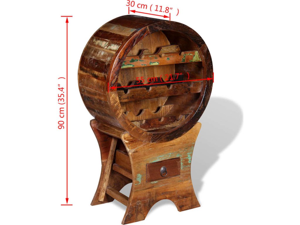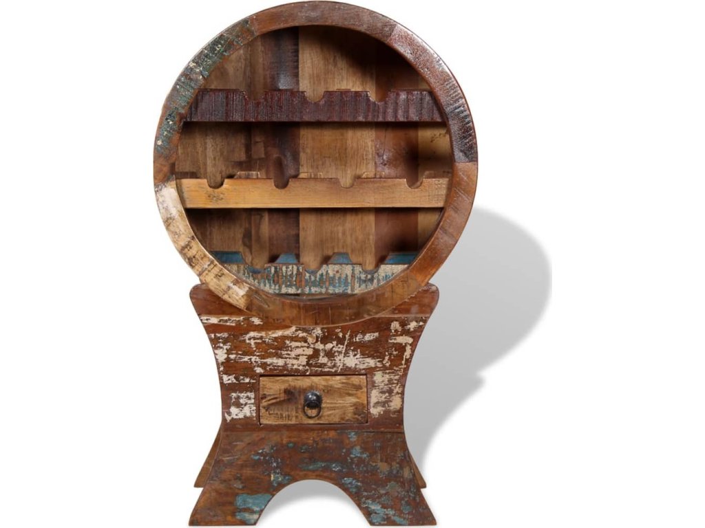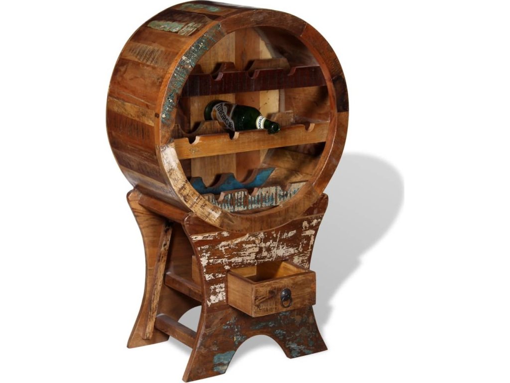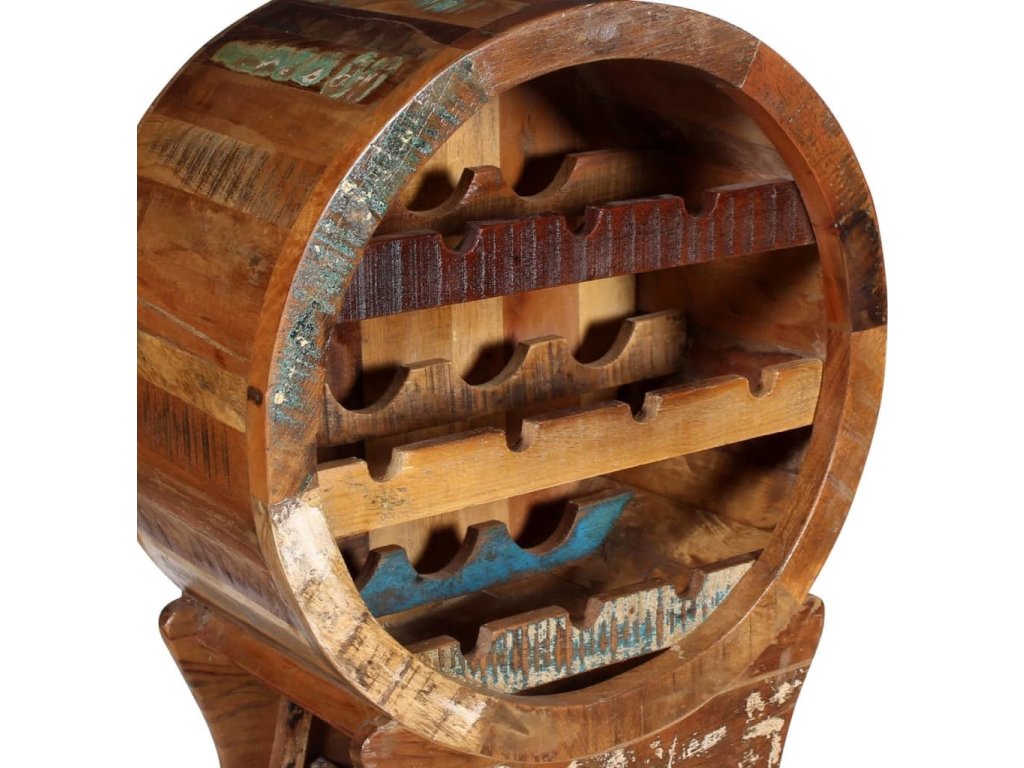 Tento stojan na víno z recyklovaného dřeva je pevný, odolný, krásný a disponuje typickými vlastnosti jednotlivých druhů dřeva jako je teak, palisandr, mangovník, akácie, recyklované dřevo, tvrdé dřevo, atd. Díky tomu je každý kus unikát. Známky používání a viditelná struktura dřeva botníku dodávají jedinečnost a podtrhují jeho krásný úchvatný vintage vzhled.