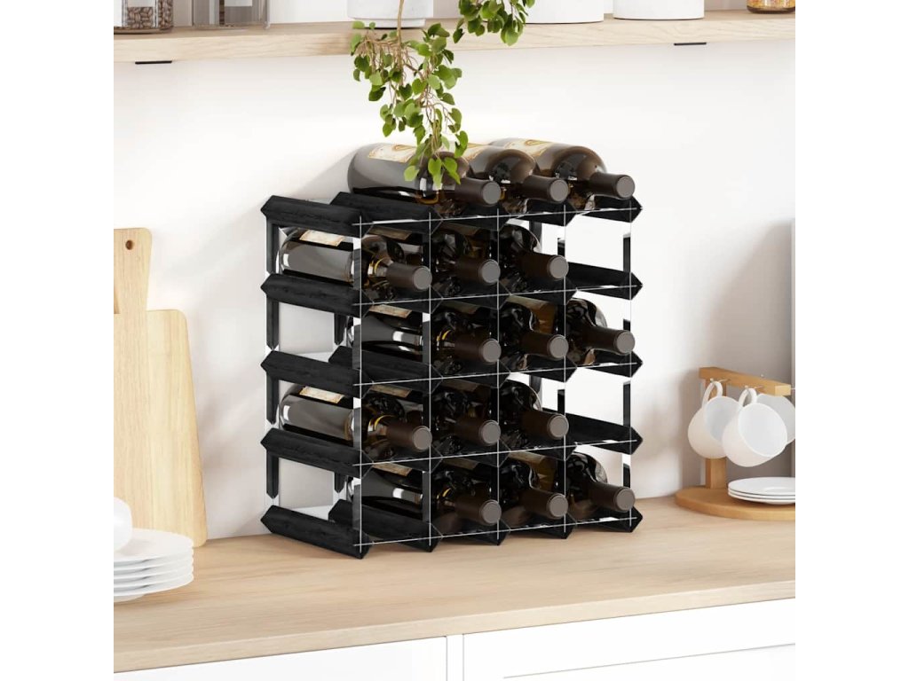 Stojan na víno na 20 lahví černý masivní borové dřevo [325914]