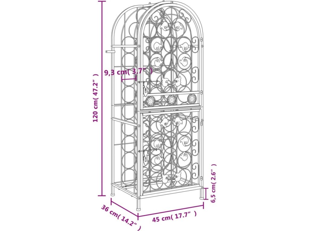 Stojan na víno na 41 lahví černý 45 x 36 x 120 cm tepané železo [358370]