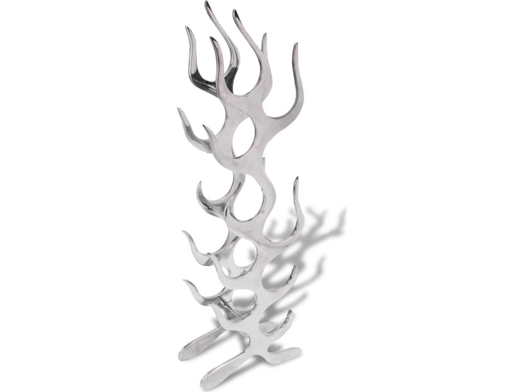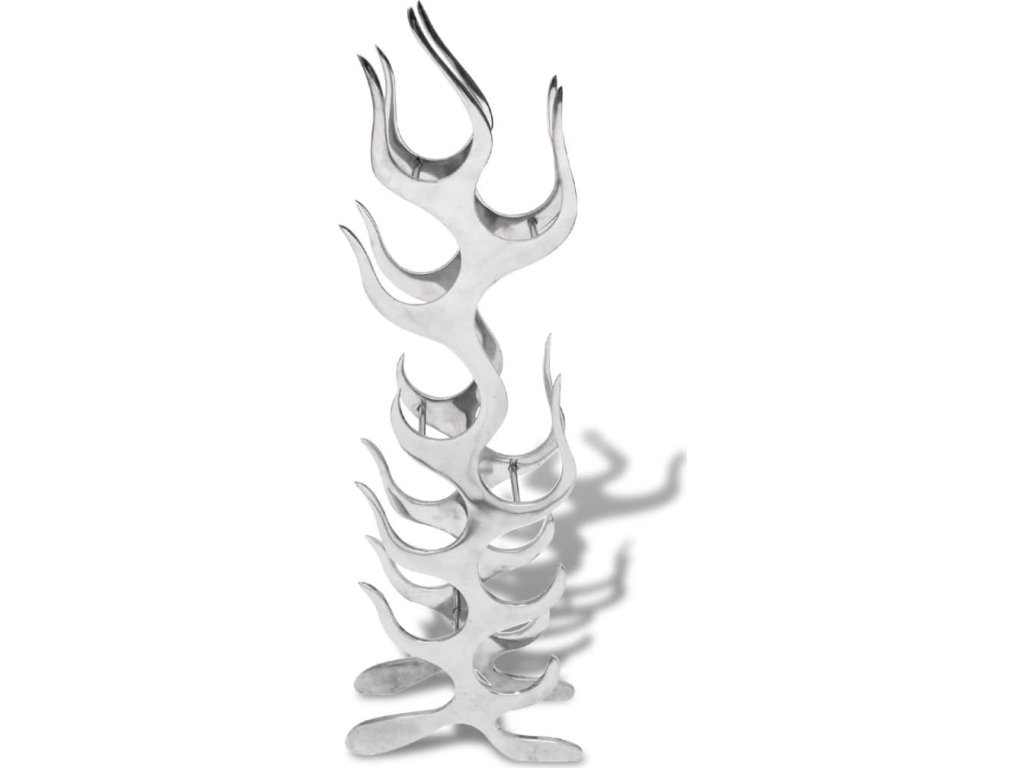 Stojan na víno ve tvaru plamenů hliníkový stříbrný 9 láhví [243502]