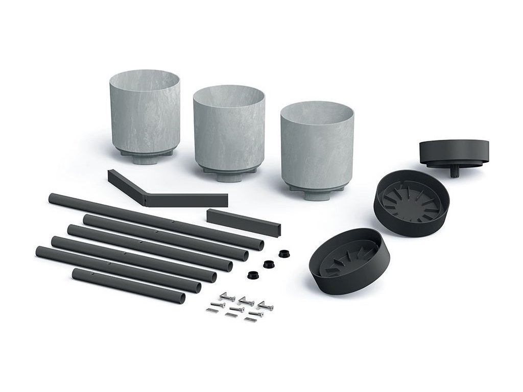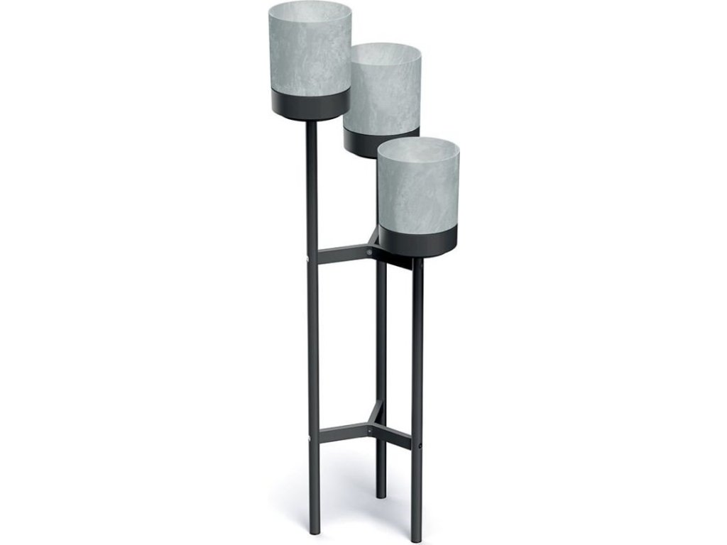Stojan má moderní design. Květináče v šedé barvě zdobí motiv připomínající beton. Zasaďte do nich své oblíbené květiny a zvýrazněte jejich krásu. Nemusíte pro ně hledat místo na polici či na skříni.