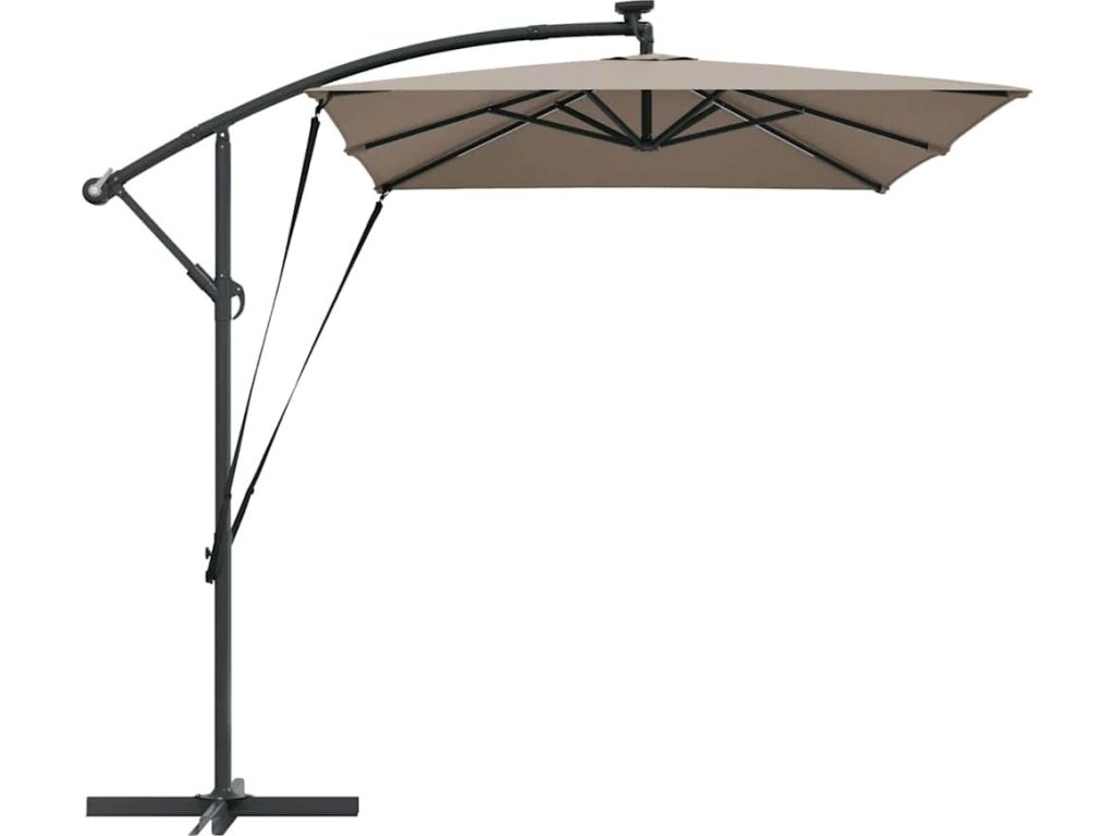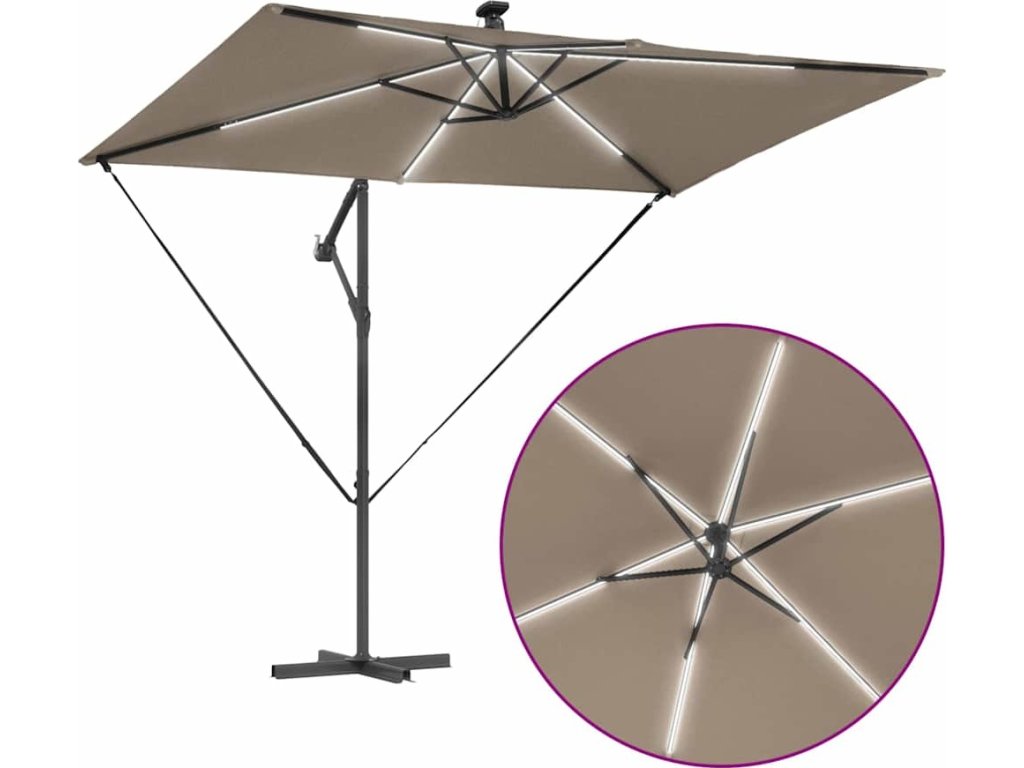 - Integrované funkce: S LED osvětlením je deštník připravený i na večerní posezení. Tyto solární světla přinášejí příjemnou atmosféru a podtrhují elegantní design deštníku.