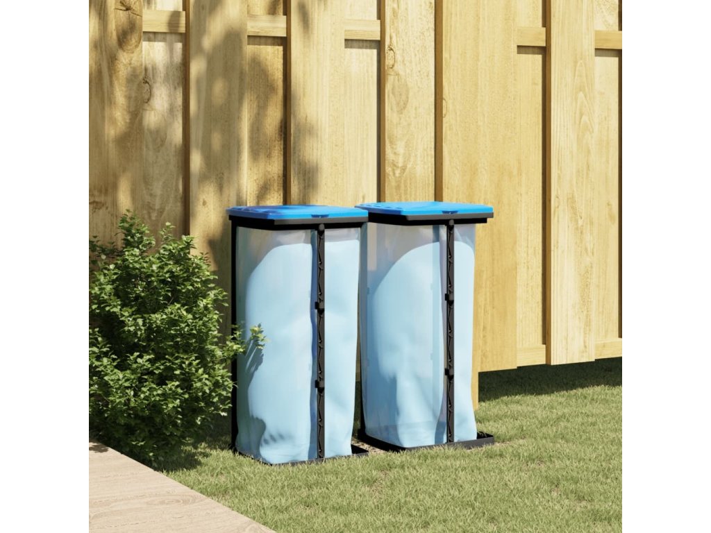 Stojany na odpadkové pytle 2 ks černé a modré 60 l PP [154979]