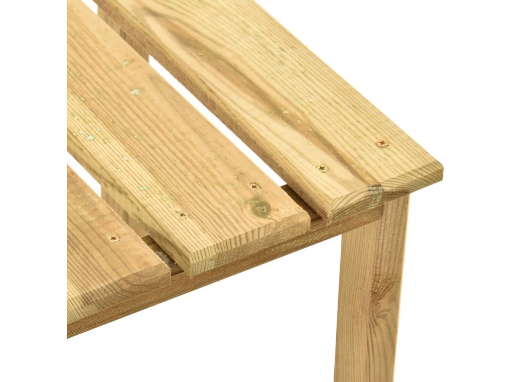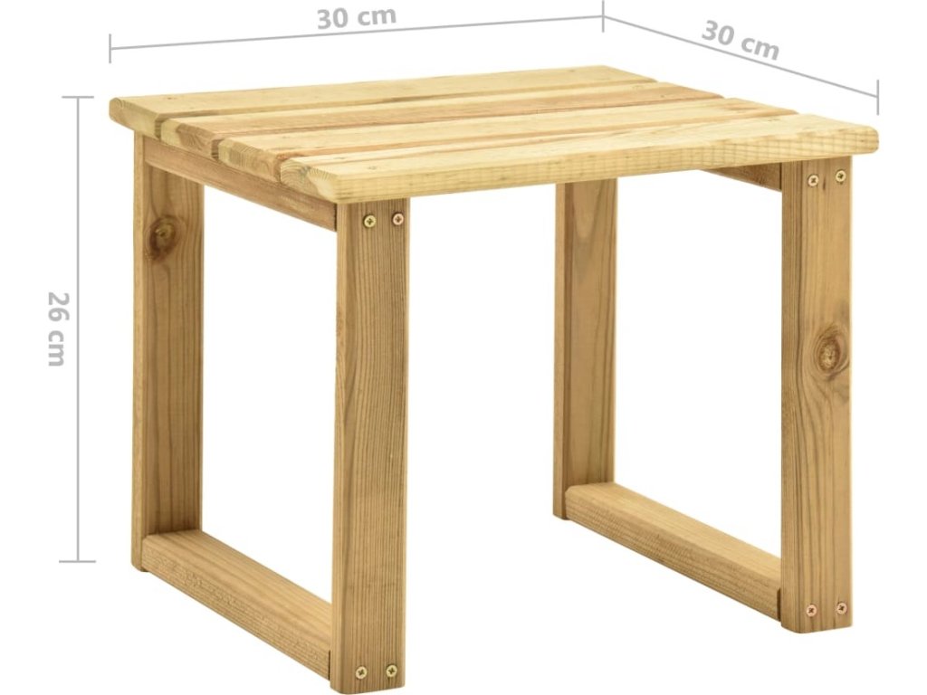 Tento stolek je vyrobený z impregnovaného borového dřeva, které je odolné vůči hnilobě a má velmi dlouhou životnost, takže je extrémně vhodný pro venkovní použití. Dřevěný stolek má pevnou stolní desku, na kterou si můžete odložit telefon, sluneční brýle, nápoje a různé drobnosti.