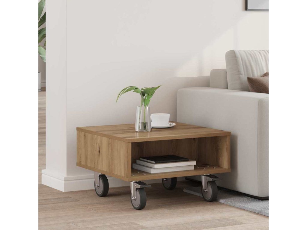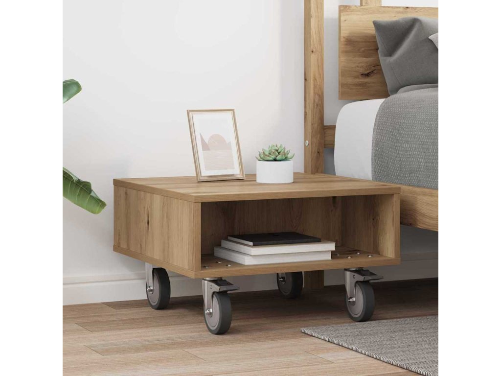 Tento moderní stolek na kolečkách je navržen tak, aby perfektně zapadl do obýváku. Skvěle spojuje funkčnost se stylem. Konstrukce z kompozitního dřeva mu dodává elegantní a moderní vzhled, zatímco obdélníkový tvar zajistí, že se pohodlně vejde vedle postele nebo pohovky. Můžete ho použít jako noční stolek nebo jako stylový doplněk do obýváku, jeho vylepšený vzhled a decentní elegance z něj dělají ideální volbu pro milovníky minimalismu.