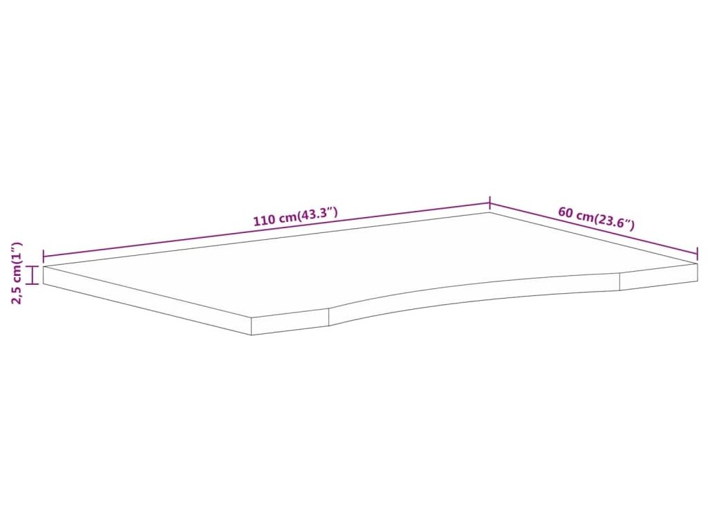Stolní deska s výřezem 110x60x2,5 cm masivní hrubý mangovník [370202]