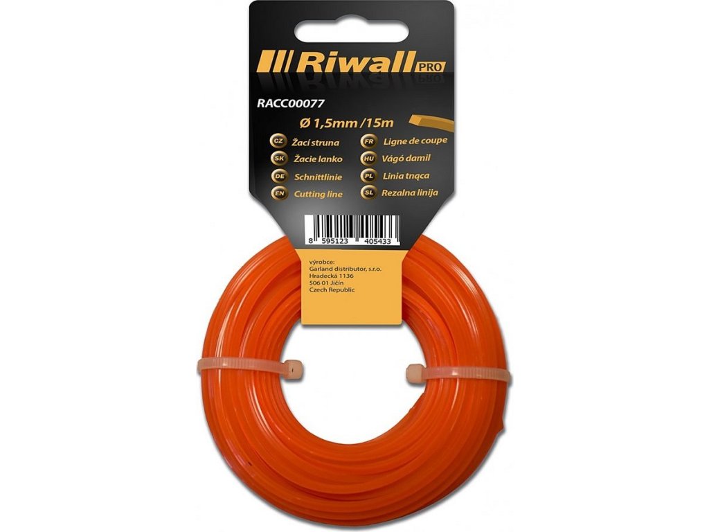 - 15m žací struna Riwall s 1,5mm průměrem je vhodná pro všechny strunové sekačky a křovinořezy se čtvercovým průřezem