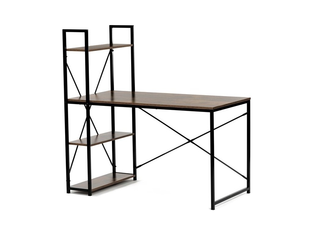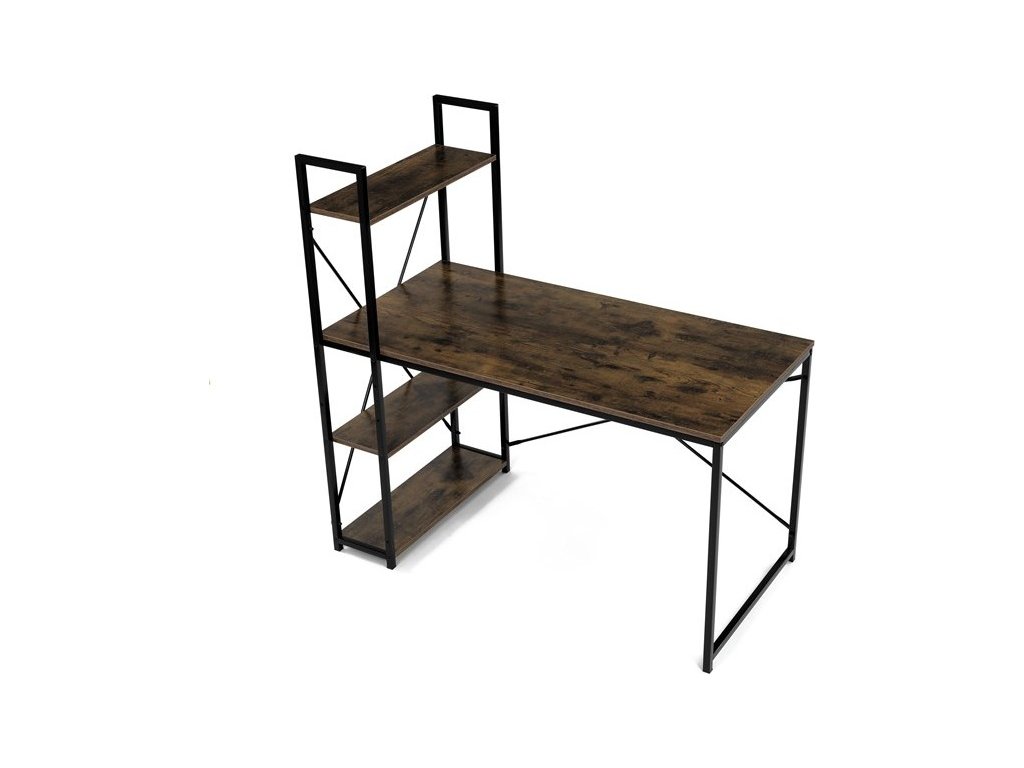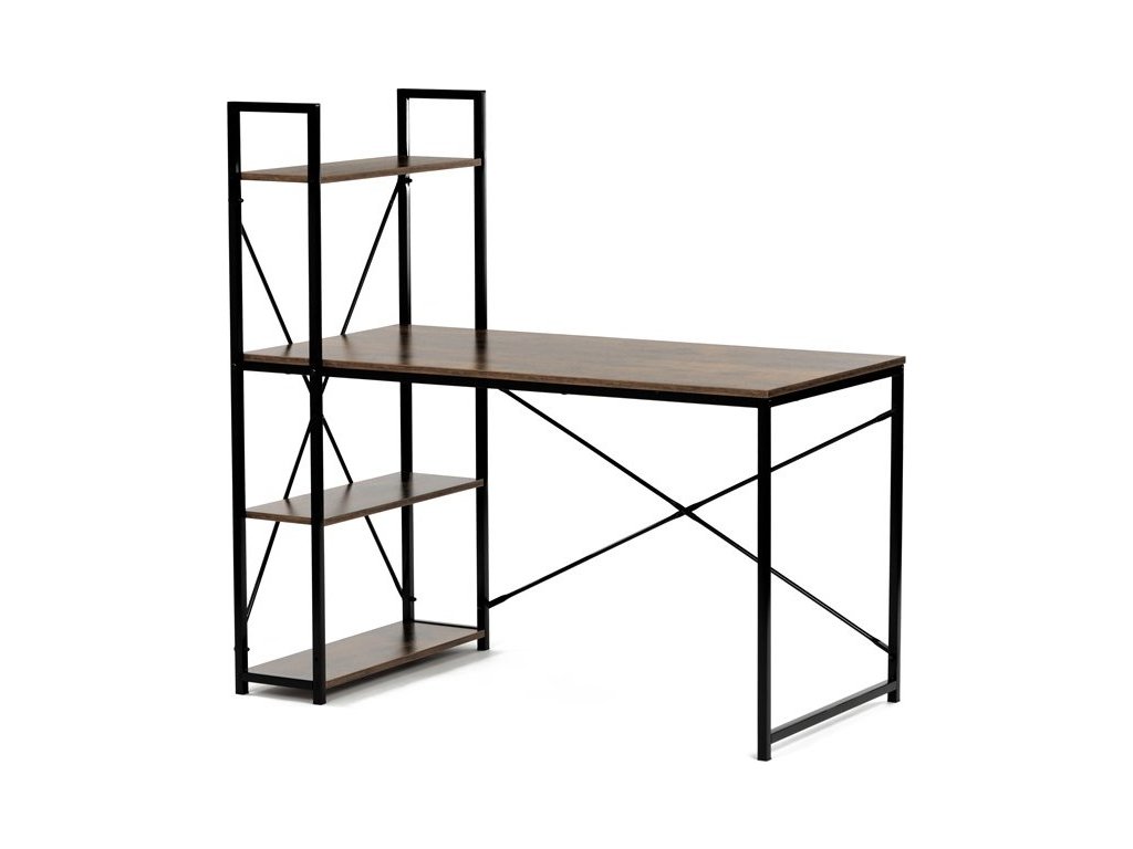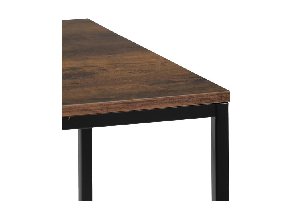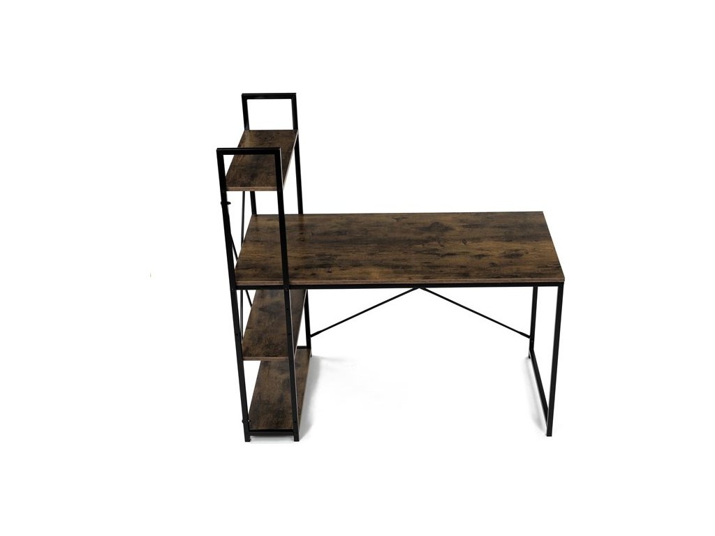 Pracovní stůl značky Autronic v industriálním stylu kombinuje funkčnost a moderní design. Hnědá MDF deska s dekorem starého dřeva a matnou úpravou přináší do interiéru teplý, přírodní vzhled. Stabilní černá kovová konstrukce se čtvercovými nohami zaručuje pevnost a odolnost. Praktické policie po straně poskytují dostatek úložného prostoru pro knihy, dokumenty nebo dekorace, což oceníte v každé pracovně. Stůl se hodí do domácí kanceláře či pracovny a díky svému industriálnímu vzhledu snadno zapadne do moderních interiérů.Rozměr police: 60 x 21 cm.
