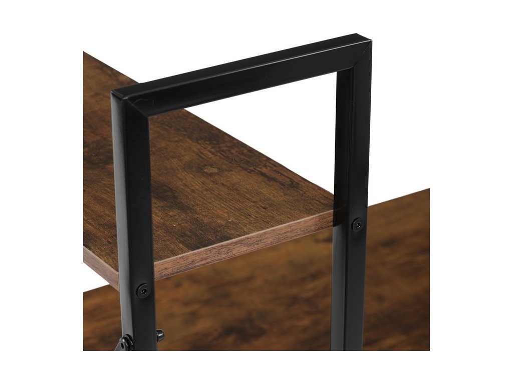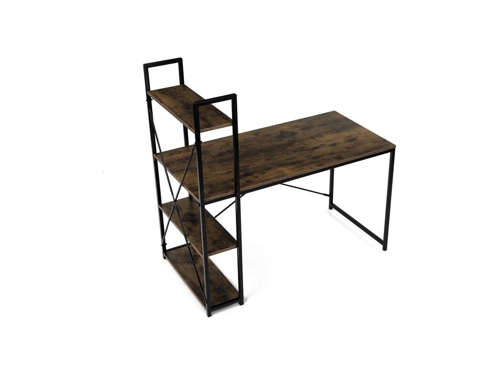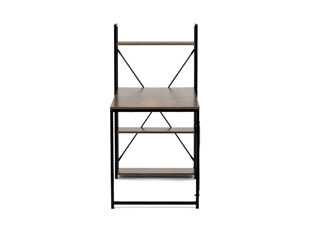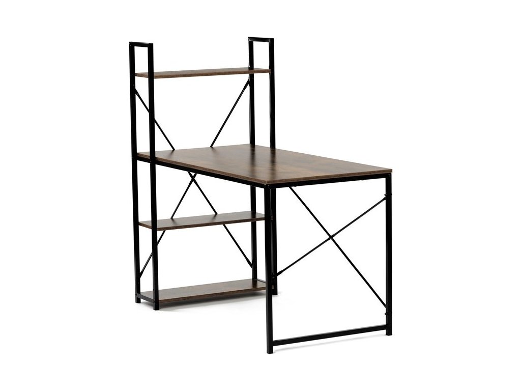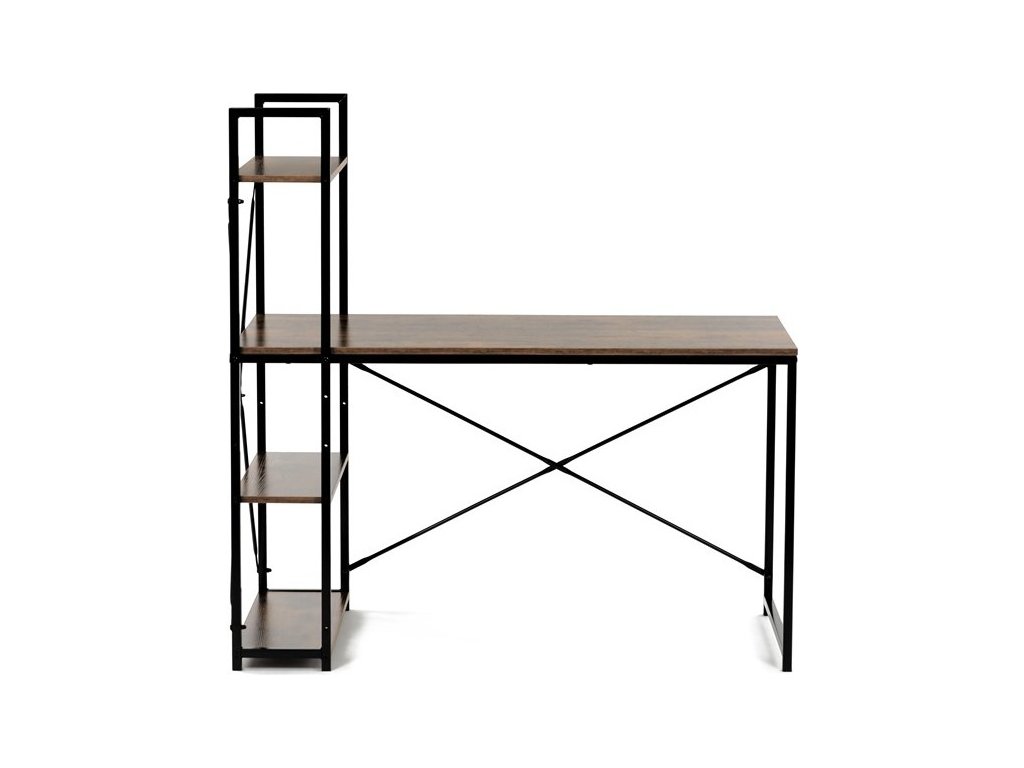 Pracovní stůl značky Autronic v industriálním stylu kombinuje funkčnost a moderní design. Hnědá MDF deska s dekorem starého dřeva a matnou úpravou přináší do interiéru teplý, přírodní vzhled. Stabilní černá kovová konstrukce se čtvercovými nohami zaručuje pevnost a odolnost. Praktické policie po straně poskytují dostatek úložného prostoru pro knihy, dokumenty nebo dekorace, což oceníte v každé pracovně. Stůl se hodí do domácí kanceláře či pracovny a díky svému industriálnímu vzhledu snadno zapadne do moderních interiérů.Rozměr police: 60 x 21 cm.