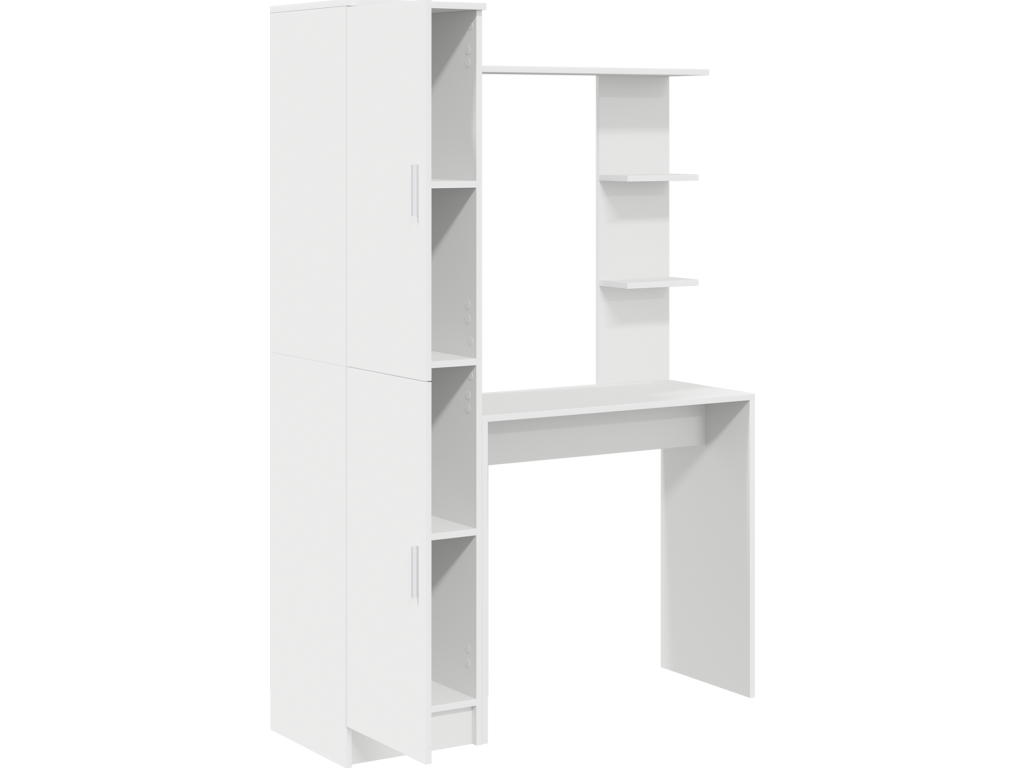 - Praktické úložné možnosti: Díky policím na deskách má stůl spoustu místa na knihy, dokumenty a další kancelářské potřeby, takže plní funkci pracovního prostoru i organizační jednotky. Dveře na pantech chrání předměty před prachem a zabraňují chaosu, když jsou zavřené.