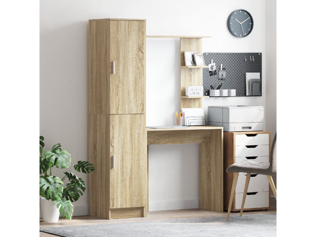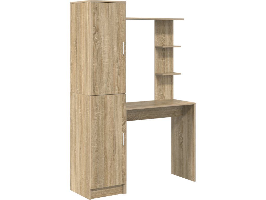 - Praktické úložné možnosti: Díky policím na deskách má stůl spoustu místa na knihy, dokumenty a další kancelářské potřeby, takže plní funkci pracovního prostoru i organizační jednotky. Dveře na pantech chrání předměty před prachem a zabraňují chaosu, když jsou zavřené.