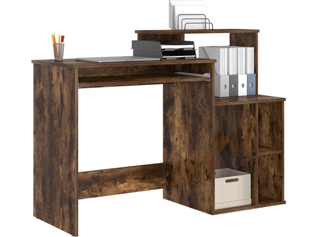 Stůl s policí Kouřový dub 120,5 x 44 x 88,5 cm kompozitní dřevo [869478]