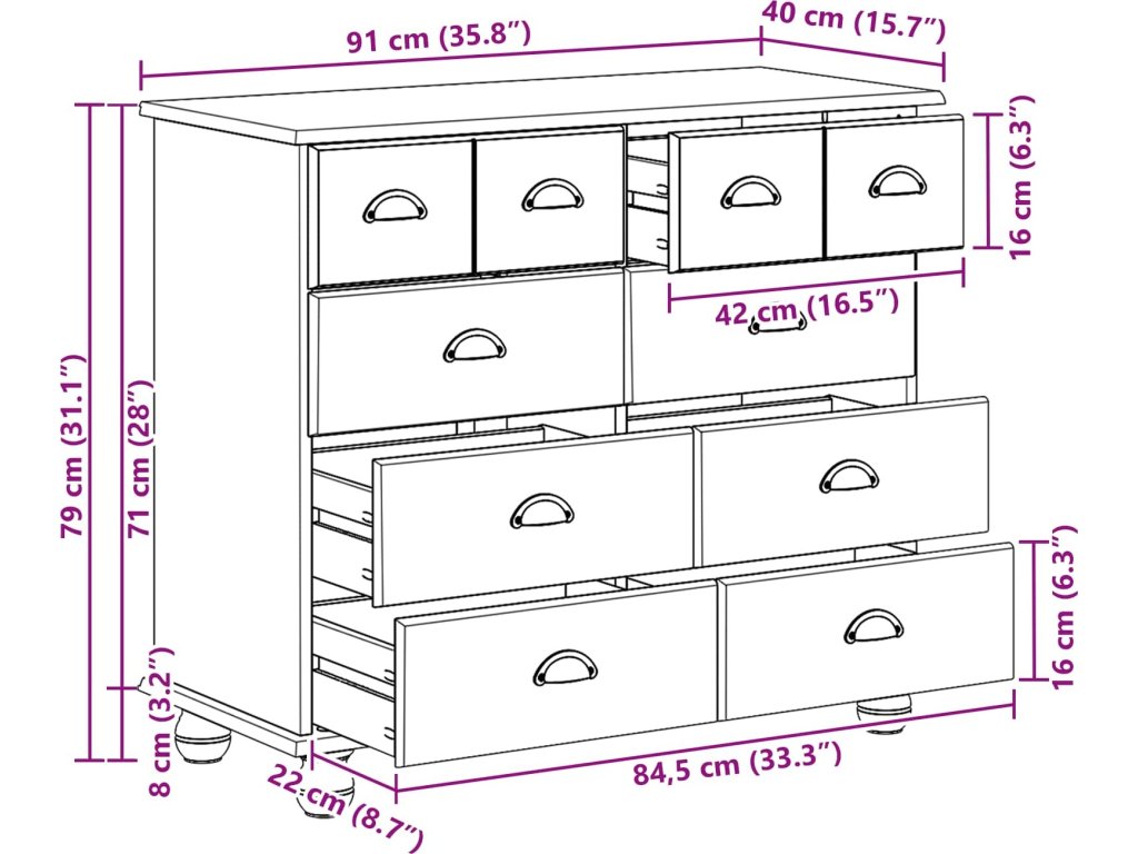 - Celkové rozměry: 91 x 40 x 79 cm (D x Š x V)