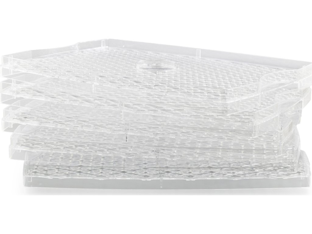 Usazení ventilátoru, výborně řešená sušící plata a navíc možnost jejich výškového nastavení garantuje rovnoměrné a rychlé sušení. Materiál sušících plat vám zase dopřeje jednoduché vyndání usušeného ovoce i zeleniny. Suroviny k platům nepřilnou, snadno je proto oddělíte.
