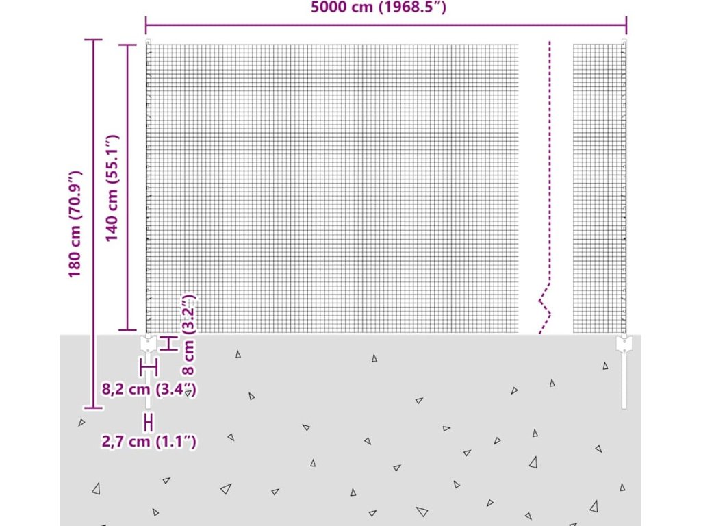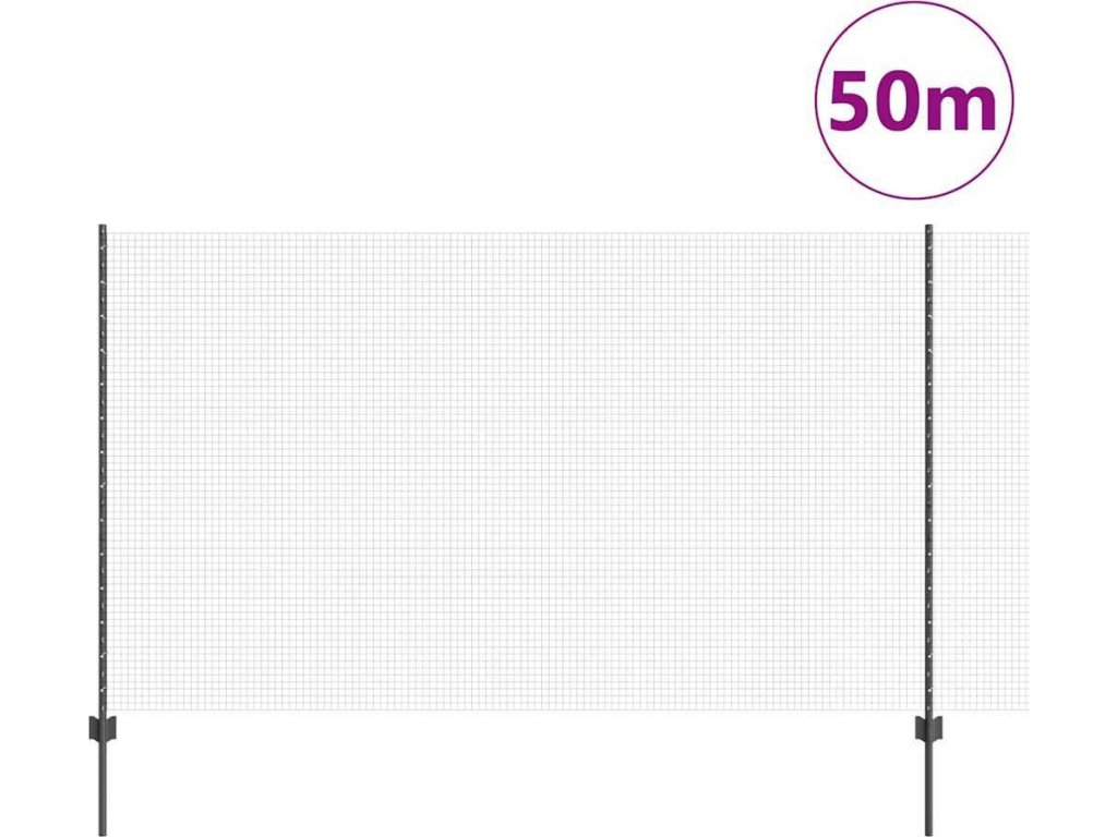 Plot s sloupkem Šedá 1,4 x 50 m Ocel a PVC [3336642]