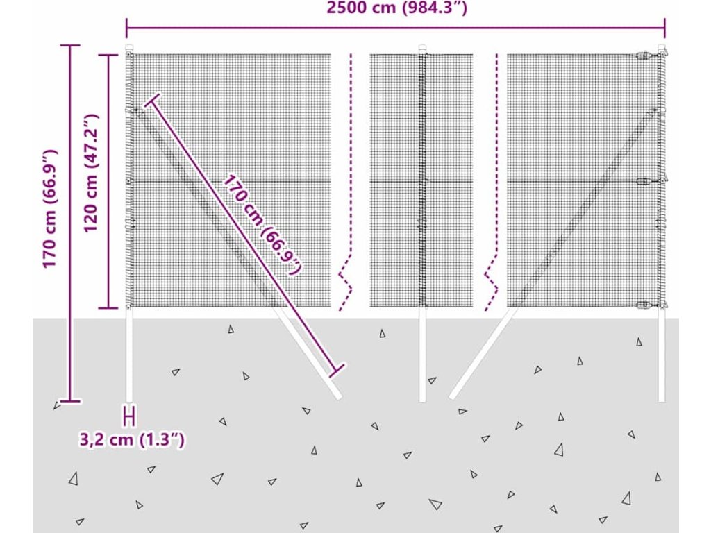 Plotový sloupek. Šedá 25 x 1,2 m (12 x 12 mm síť) Ocel a PVC [3351847]