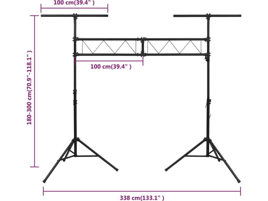Světelná rampa se stojany černá 338 x 115 x (180–300) cm ocel [70179]