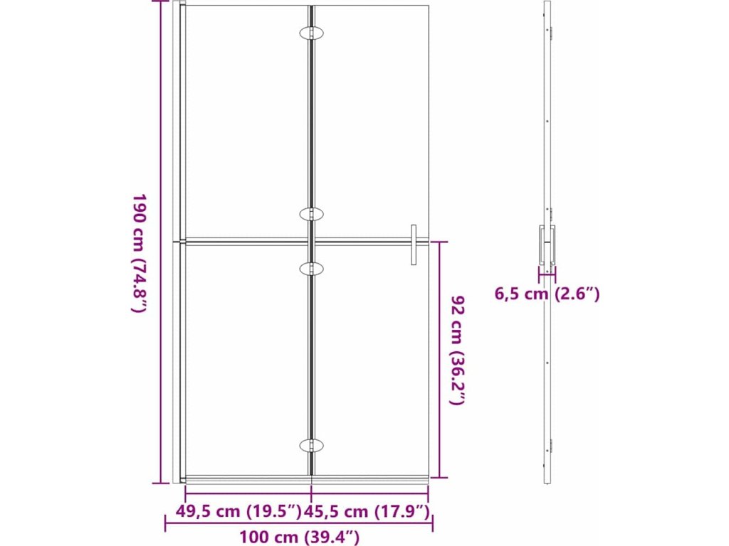 - Celkové rozměry: 100 x 6,5 x 190 cm (D x Š x V)