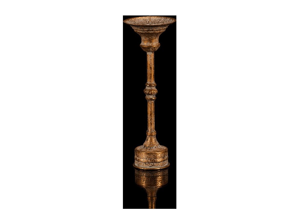 Kovová dekorace v podobě vysokého zlatého svícnu vám přináší noblesu a eleganci přímo na váš stůl. Právě kombinace zlaté barvy se starožitným vzhledem, povýší vaše běžné stolování na královskou úroveň. S tímto unikátním artiklem, který věrně připomíná cenný předmět s historickou hodnotou, se budete cítit jako host na královském, či dokonce císařském dvoře. Už jen stačí vybrat tu správnou svíčku, zapálit knot a pak už si jen vychutnávat chvíle plné romantiky a elegance. Kombinace estetiky a světelného efektu promění fádní okamžiky trávené u stolu v nezapomenutelnou událost plné záře, lesku a luxusu.
