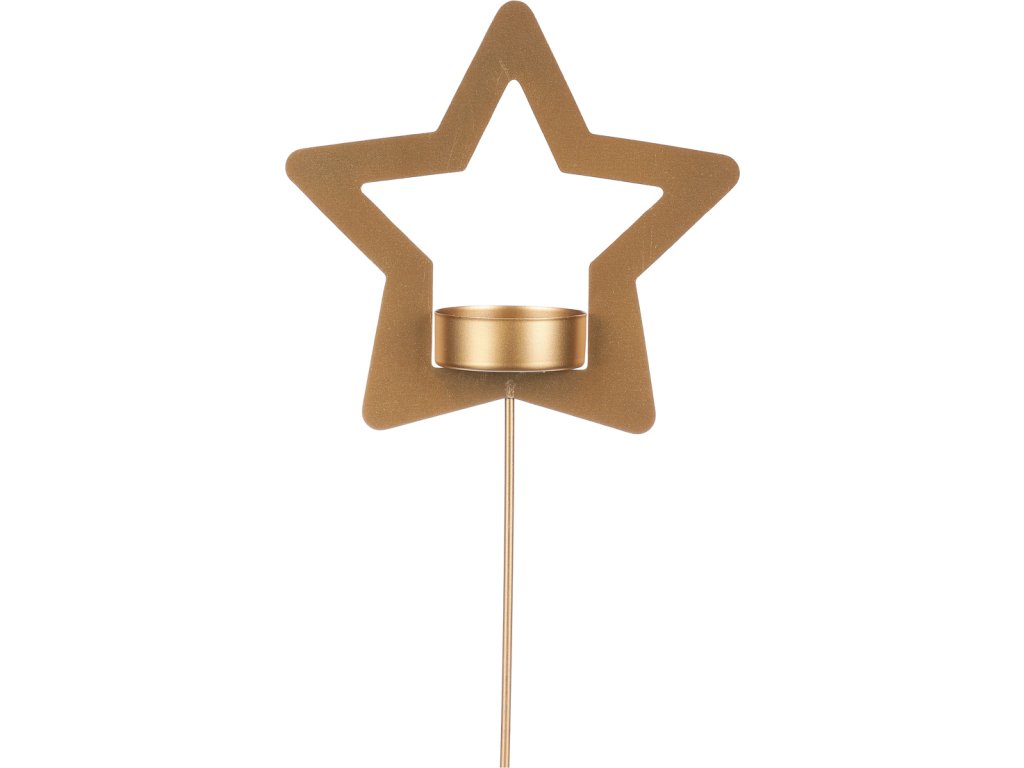 Svícen kovový ve tvaru hvězdy - zápich, na čajovou svíčku, matná zlatá. CP151098-ZLATA