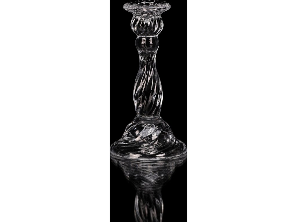Skleněný svícen na kónickou svíčku s výškou 16 cm z čirého broušeného skla. Jeho elegantní design vynikne v každém interiéru, a díky své hmotnosti bude stabilní a bezpečný pro ozdobení stolů a poliček. Jedná se o působivou dekoraci, která po zapálení svíčky rozzáří prostor neodolatelnými třpytivými odlesky všemi směry.
