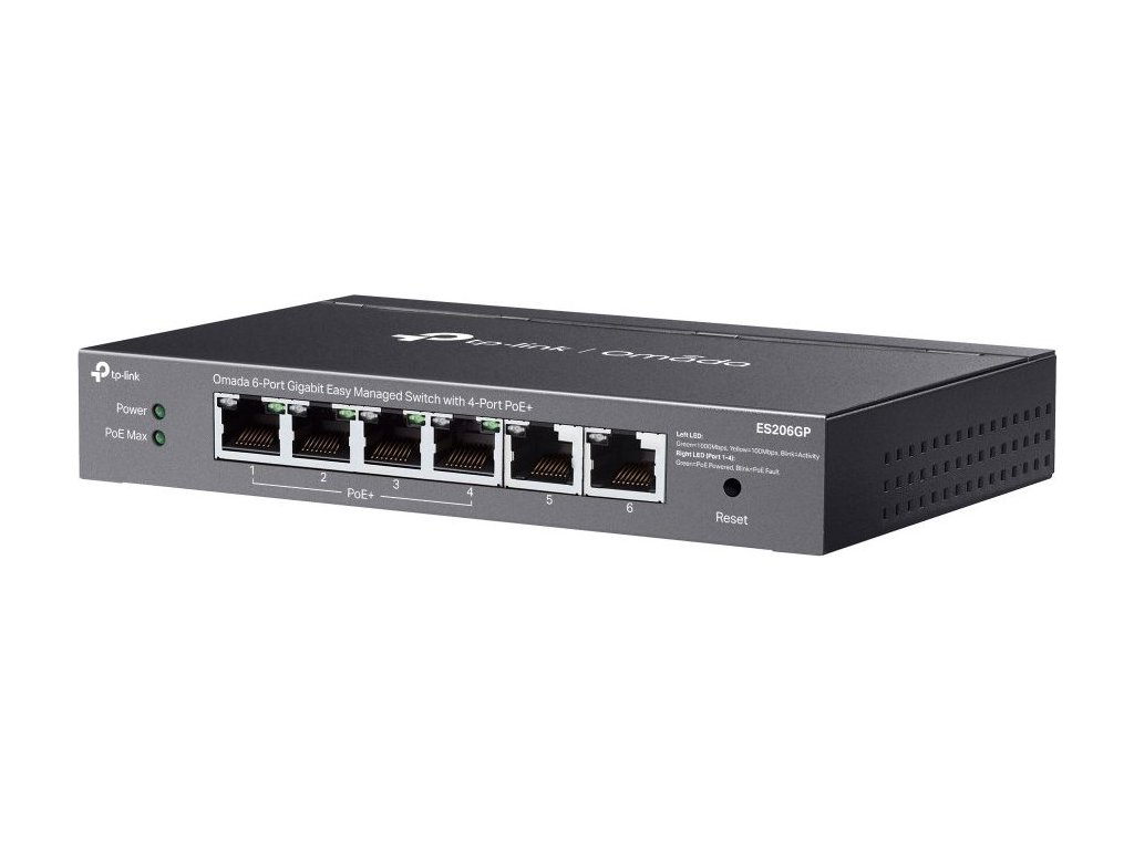 Switch TP-Link ES206GP využijete v kanceláři, pro maloobchod, univerzitní areál či pohostinství. Zajistí vám vysokorychlostní a spolehlivé spojení s dalšími switchi a zařízeními. Je navíc kompatibilní s IP kamerami, přístupovými body a zařízeními bez PoE (tiskárny a počítače). Najdete na něm celkem 6 gigabitových portů RJ45. 4 z nich podporují PoE+ a standard 802.3at/af. Jejich celkový rozpočet je 65 W, na každý port pak připadá až 30 W.