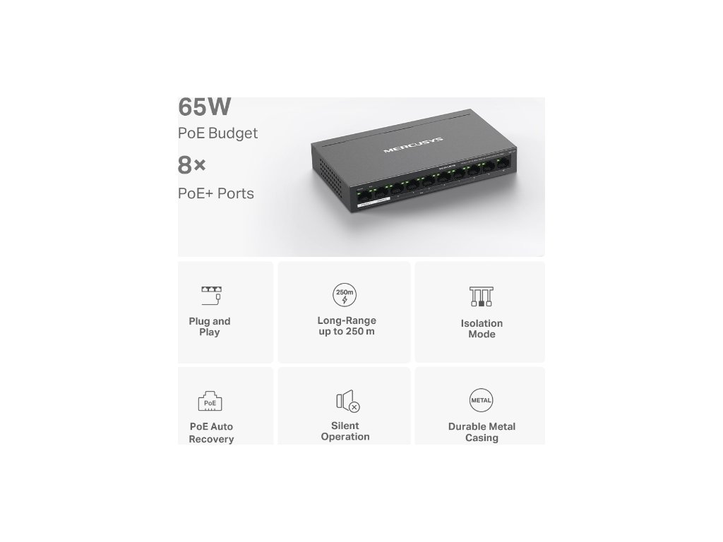 Switch TP-Link Mercusys MS110P 2x LAN s PoE, 8x LAN s PoE+, 65W [52453530]
