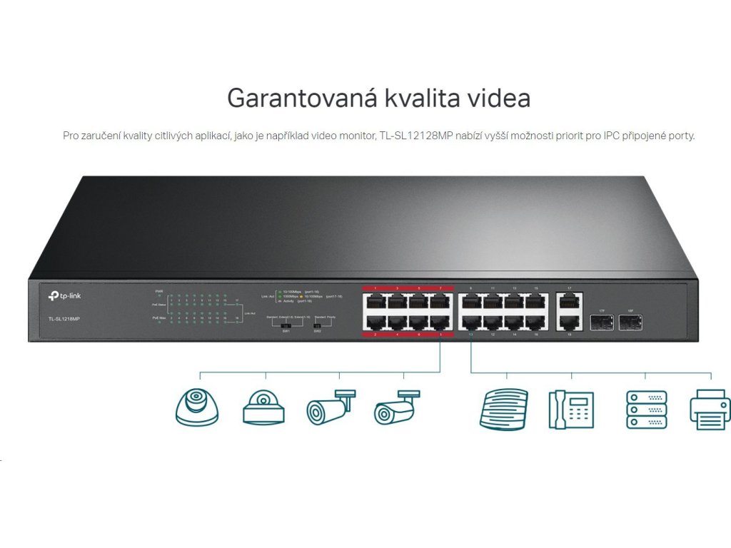 TL-SL1218MP vyhovuje standardu 802.3af/at PoE + a podporuje až 30W
